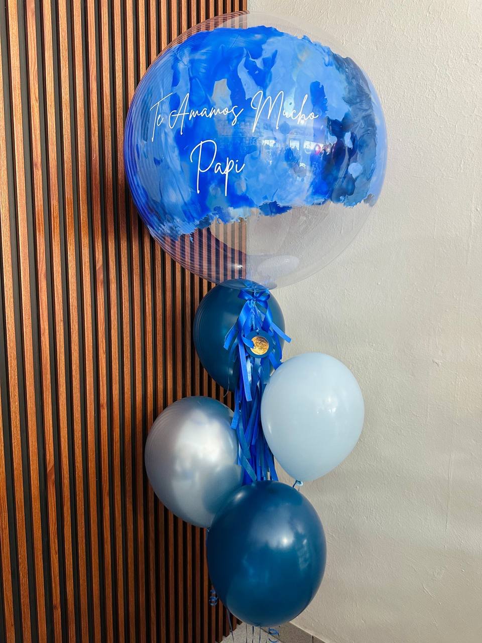burbuja 24″ personalizada con pintura anillo, 4 globos látex