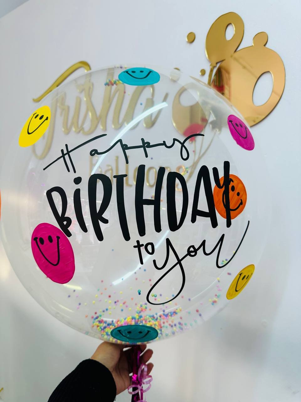 BURBUJA PERSONALIZADA CON MICROPERLAS DE COLORES EN INTERIOR