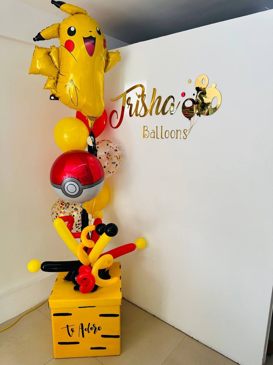 Caja 60×60 personalizada adaptada alun tema o personaje, bouquet con personaje 36″ 1 orbz 15″ 5 latex, tapa decorada con globo 260 y espirales