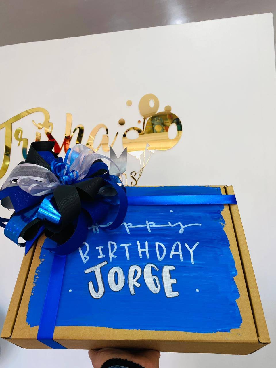 Caja rectangular personalizada en tono kraft, pintada a una cara, detalle con moño listón