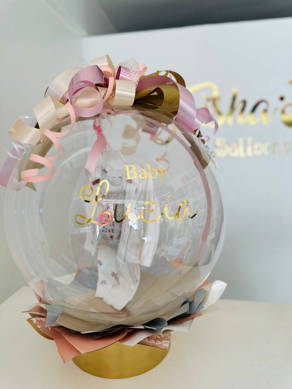 Englobado ropa baby, base rigida, personalizado en vinil y moño tamaño M (ropa la proporciona el cliente)