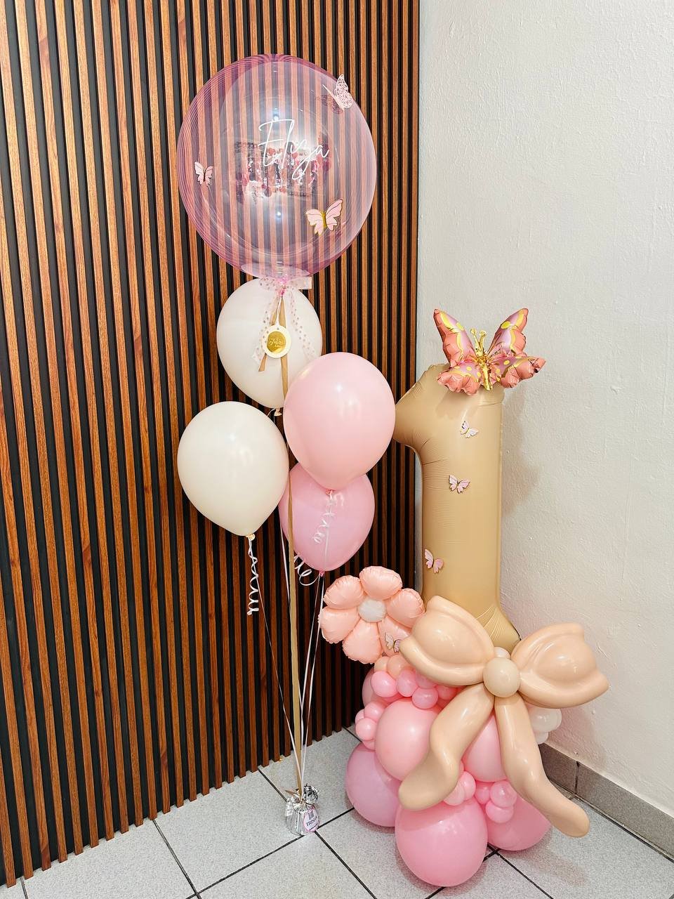 Maxibouquet numero foil 36″ base pequeña y lazo en distorción, burbuja personalizada 10″ y 4 globos latex #12