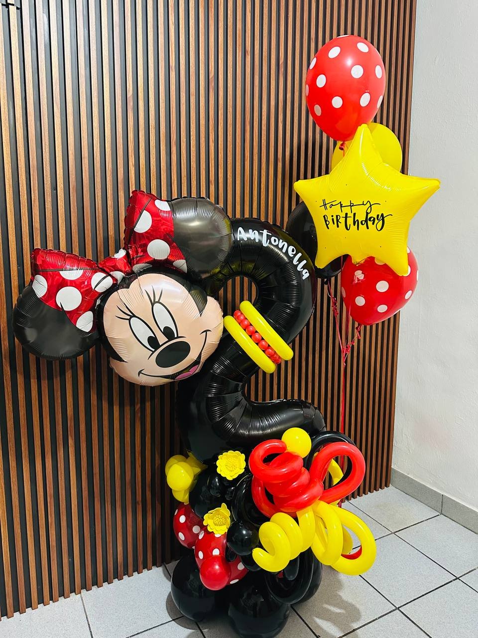Maxibouquet personaje y 1 numero foil 36″ base con relleno y bouquet de globos 1 foil 18″ y 4 latex